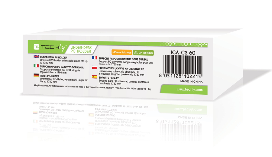 ICA-CS 60 è un supporto universale per CPU con cinghie regolabili fino a 178 cm. È composto da due binari realizzati in solido acciaio con trattamento anti ruggine e da due cinghie antiscivolo resistenti alle alte tensioni. Adatto al fissaggio su scrivanie dallo spessore maggiore di 15 mm.Caratteristiche
