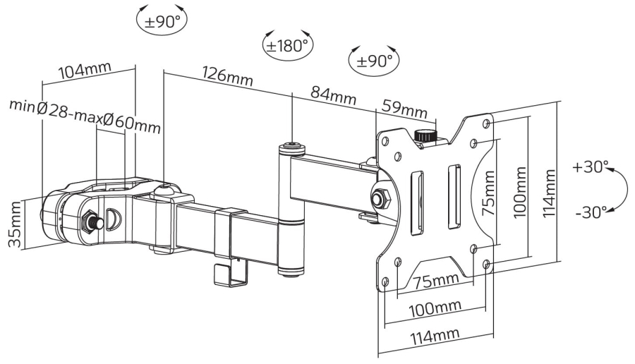 - Ideale per installare uno schermo fino a 32 su palo di supporto con diametro compreso tra 28 e 60 mm