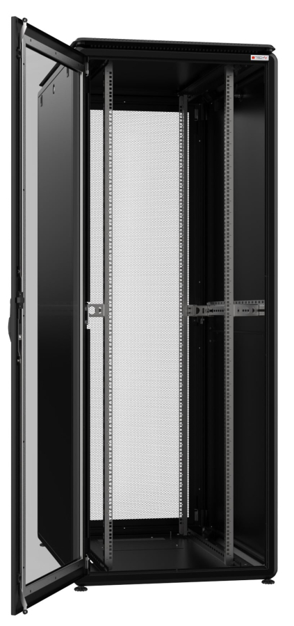 - Pannelli laterali ciechi removibili a due sezioni con serratura a chiave; Porta posteriore forata al 63% con serratura a chiave