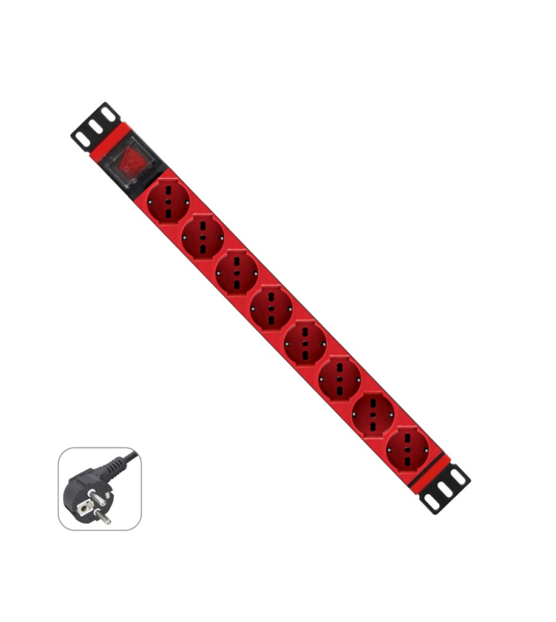 MULTIPRESA RACK 19" 8 X ITA/SCHUKO ROSSE SPINA SCHUKO