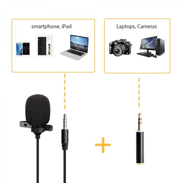 Microfono Lavalier Condensatore Omnidirezionale 3.5mm Adattatore PC