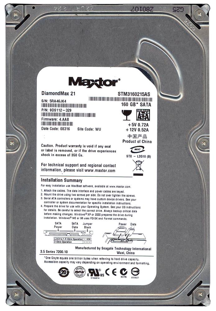 MAXTOR STM3160215AS disco rigido interno 3.5" 160 GB Serial ATA/300- USATO Ricondizionato