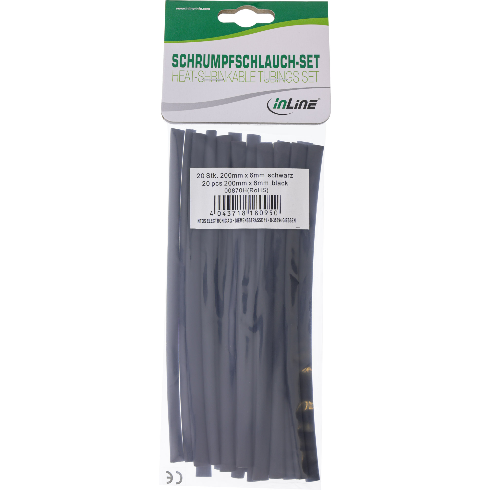 InLine Guaina termo restringente 2:1, 6mm-3mm, 200mm nero Conf.20pz