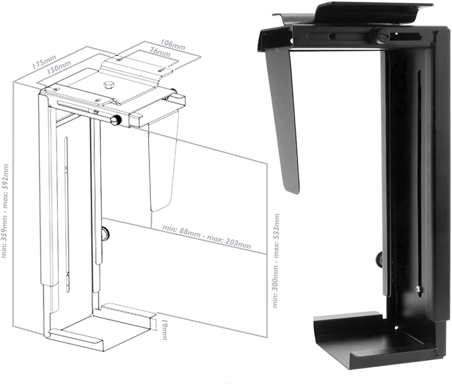 Supporto PC Sotto Scrivania / Parete Regolabile
