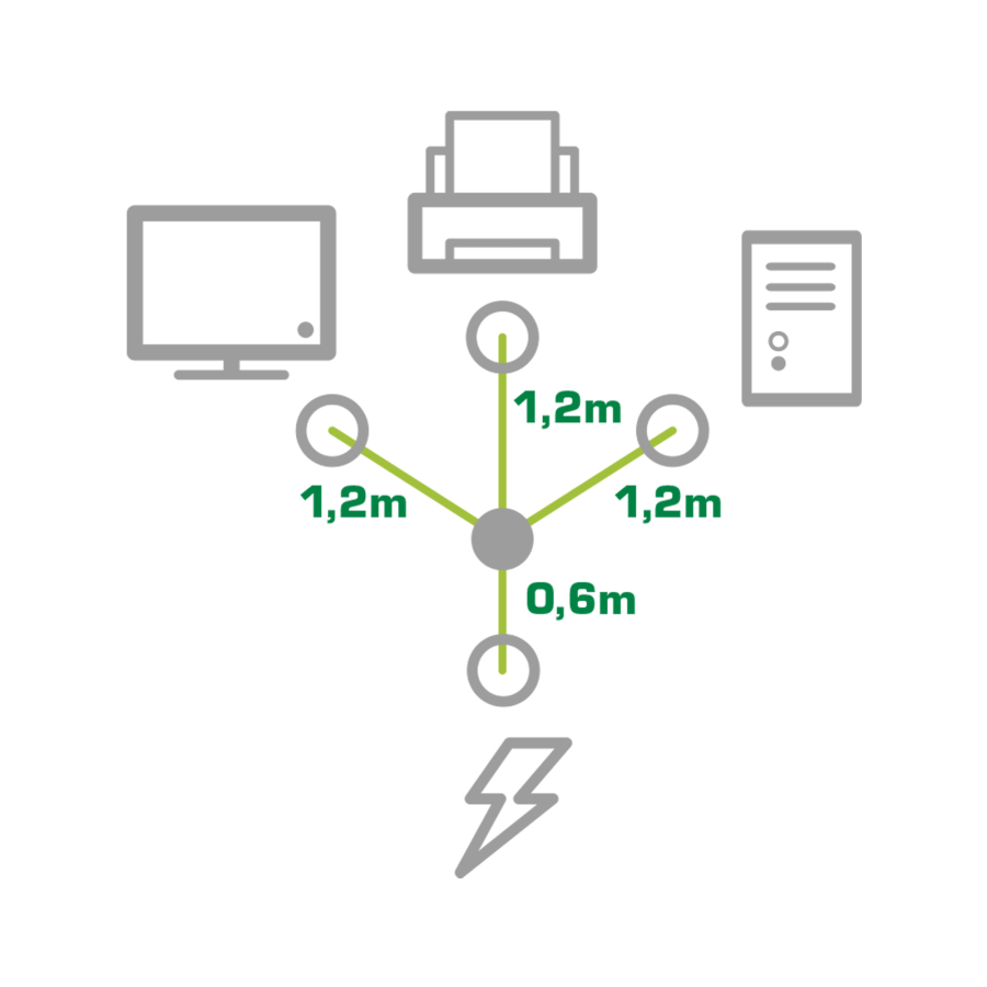- Alimentazione simultanea di tre dispositivi: una spina con contatto di protezione fornisce corrente a un massimo di tre dispositivi con connettore IEC-C13 per apparecchi a freddo.