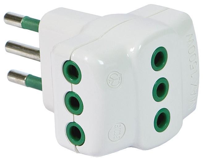 Adattatore Triplo Spina 2P+T Presa 2P+T 10A
