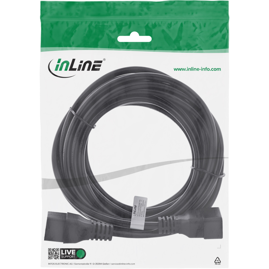 InLine Cavo alimentaz. prolunga IEC-60320, presa C19 spina C20,16A, nero, 0,75m
