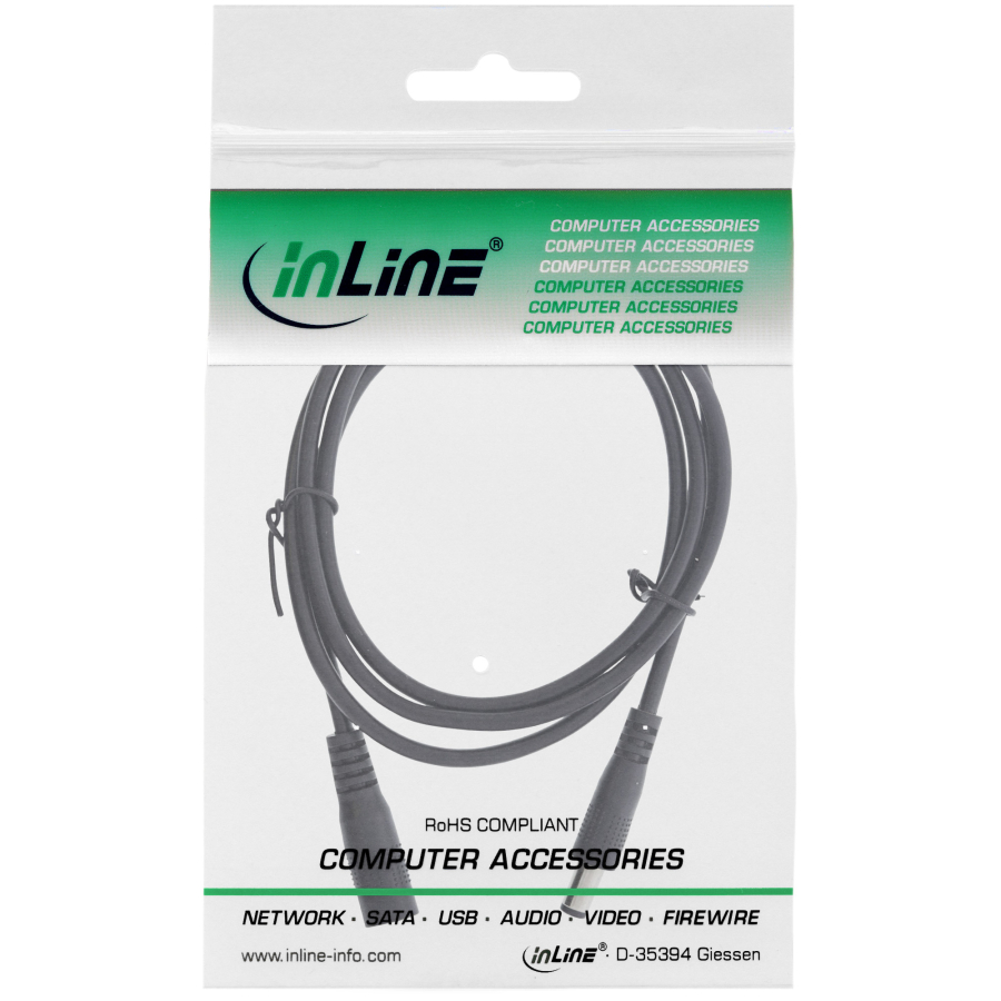 InLine Cavo di prolunga DC, maschio/femmina 5,5x2,1mm, AWG24, nero, 0,5m