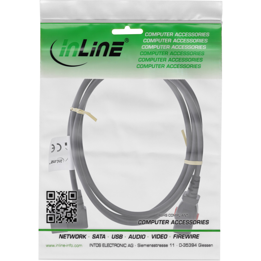 La prolunga per apparecchiature fredde InLine con spina C13 bloccabile e connettore IEC-C14 angolato garantisce un collegamento elettrico particolarmente sicuro e stabile in ambienti professionali e privati. Grazie al blocco integrato, la spina rimane saldamente inserita nella presa anche in caso di movimento, vibrazioni o spazi ristretti: ideale per l'uso in sale server, rack da 19" o installazioni AV.