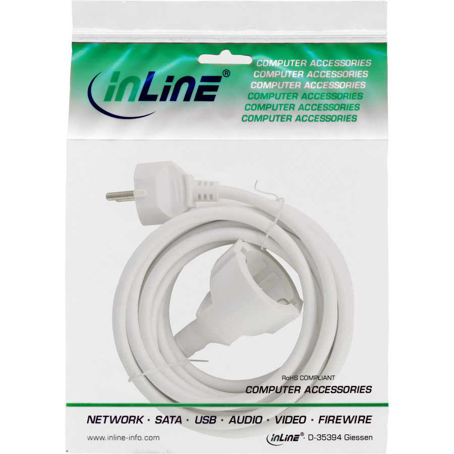 InLine Cavo prolunga con messa a terra H05VV-F3G1.5, bianco, 1m