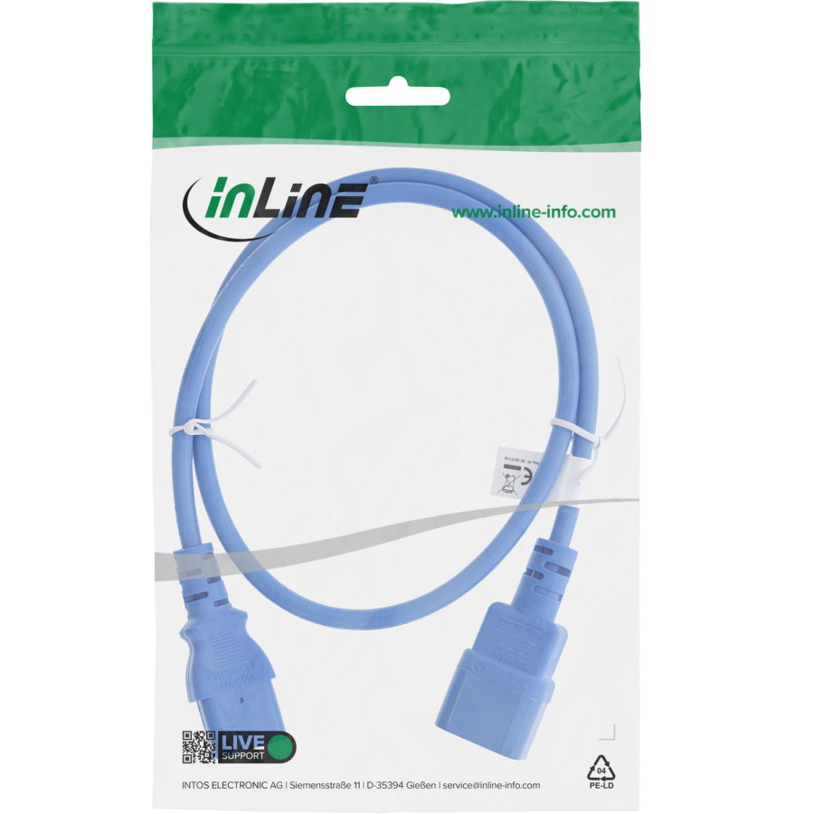 InLine Prolunga elettrica, da C13 a C14, blu, 0,5m