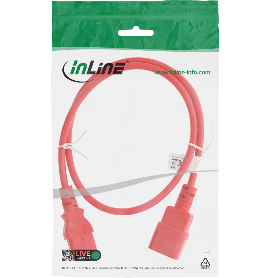 InLine Prolunga elettrica, da C13 a C14, rosso, 0,5m
