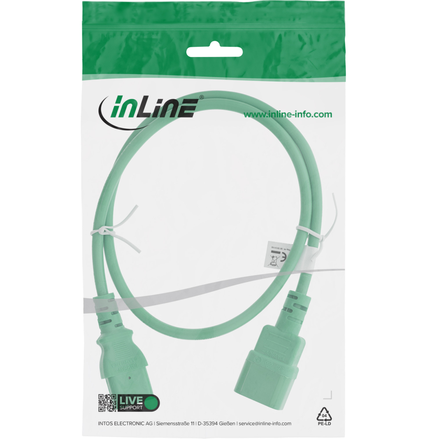 InLine Prolunga elettrica, da C13 a C14, verde, 0,5m