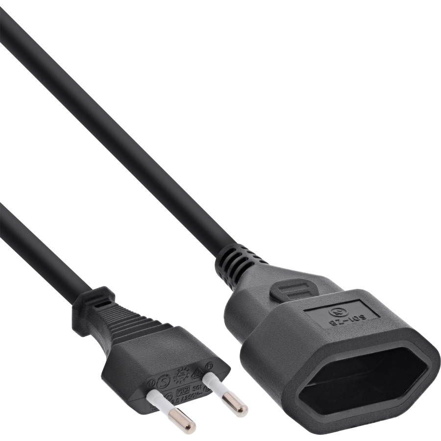 Con la prolunga InLine Euro avrete un cavo di alimentazione di alta qualità per il collegamento sicuro di numerosi apparecchi elettrici con spina Euro. A casa, in ufficio o in viaggio, questo cavo compatto e robusto è versatile. Il cavo di prolunga a 2 poli è progettato appositamente per dispositivi di classe di protezione II e consente il funzionamento affidabile di dischi rigidi esterni, radio, calcolatrici tascabili o accessori AV. La lavorazione di alta qualità con connettori stampati garantisce una lunga durata, anche con un uso regolare. Grazie al design compatto, il cavo è ideale per l'uso dietro i mobili o in spazi ristretti. Che si tratti di sostituire, prolungare o ampliare la vostra infrastruttura elettrica esistente, con il cavo di prolunga Euro InLine sarete sempre ben equipaggiati. Affidatevi alla qualità testata e alle connessioni sicure.