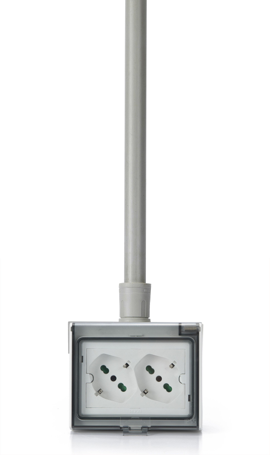 - Presa multipla da muro a due posti da esterno con scatola 3 moduli