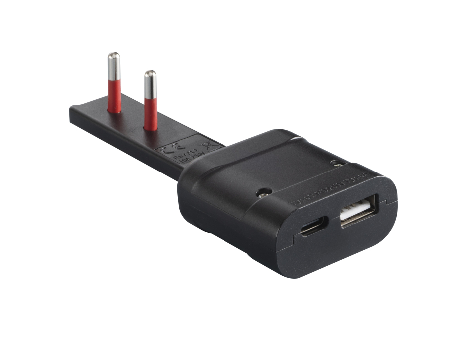Spina Italiana Ultrapiatta USB tipo A e USB-C™ 2P+T250V 10A 20W. Nero