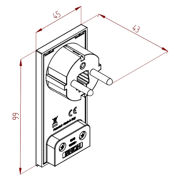 - Colore spina elettrica tedesca ultra piatta: bianco; Dimensioni: 45.0 x 43.0 x 99.0 mm