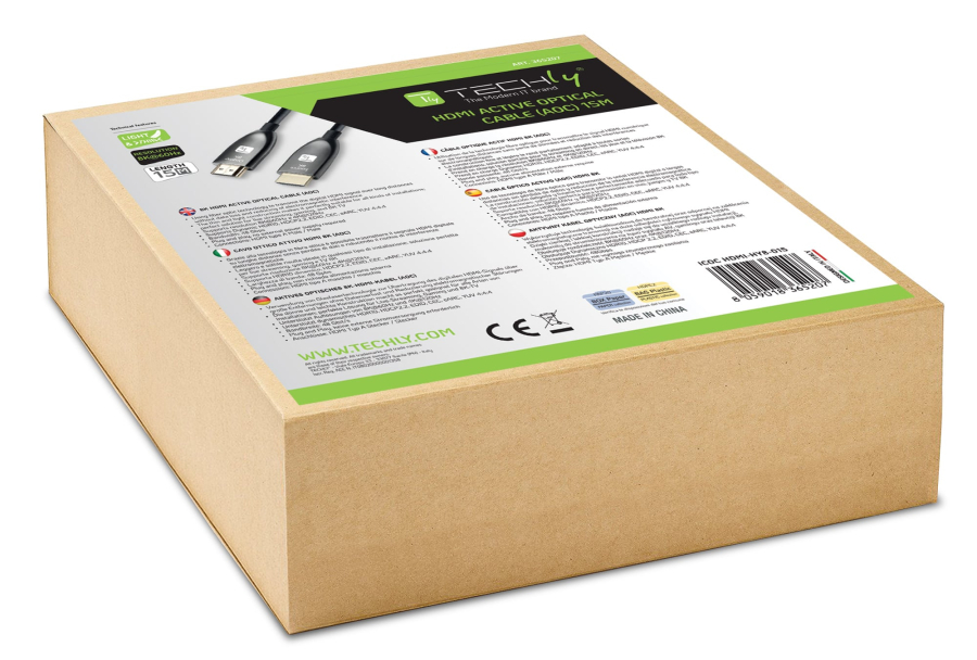 - Cavo in fibra ottica OM3 a 4 fili e conduttori in rame a 7 fili; Dotato di guaina in PVC; Non richiede alimentazione esterna: assorbe potenza dal dispositivo collegato per trasmettere il segnale 8K su lunghe distanze
