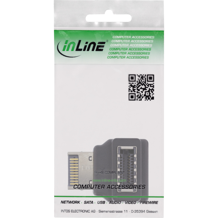 InLine Adattatore USB 3.2 interno, pannello frontale da USB-E m a USB-E f 90°