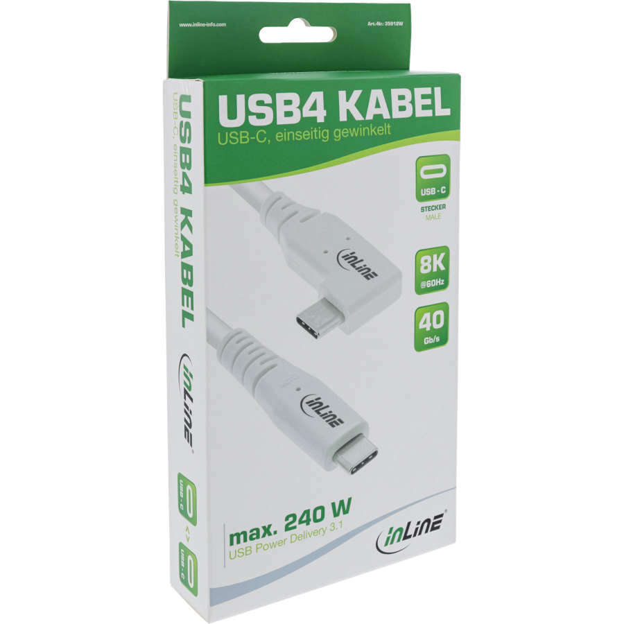 InLine cavo USB4, USB-C, un lato angolato, PD 240W, 8K60Hz, TPE, bianco, 1m