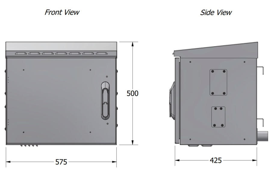 - Dimensioni ICRCAM66-MIDI: 575 x 425 x 500 mm; RAL 7035; Colore: grigio