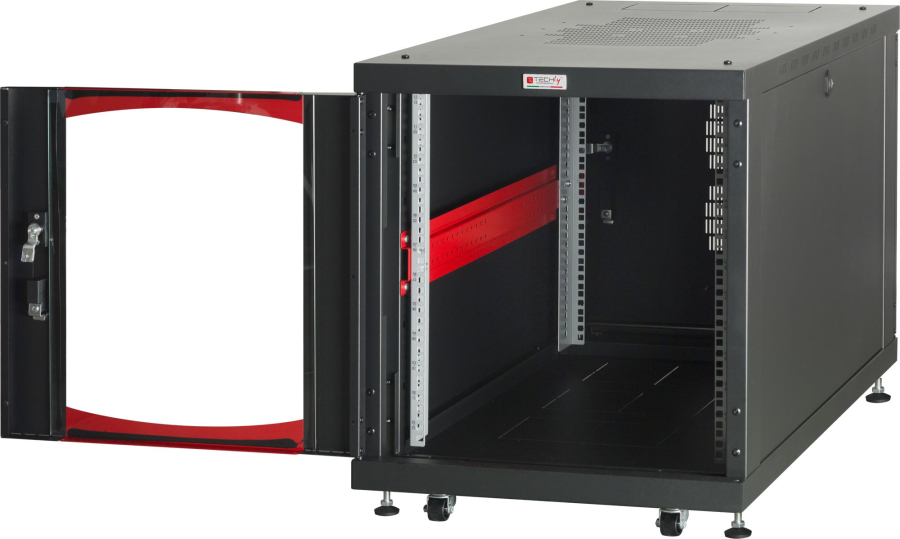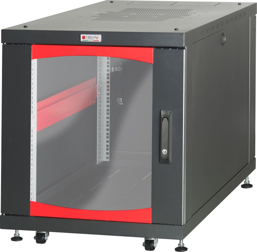Armadio rack a pavimento robusto caratterizzato da una struttura robusta con pannelli velocemente removibili e porte facilmente reversibili. Il design lineare e moderno non trascura l’aspetto estetico reso unico dai profili di colore rosso. Pienamente compatibile con tutti gli accessori da rack 19” permette di incontrare qualsiasi esigenza di installazione e grazie alla profondità maggiorata permette di ospitare la maggior parte dei server presenti sul mercato. Rappresenta la soluzione perfetta per l alloggiamento di server e periferiche di rete 19 per uffici e piccole aziende.Caratteristiche