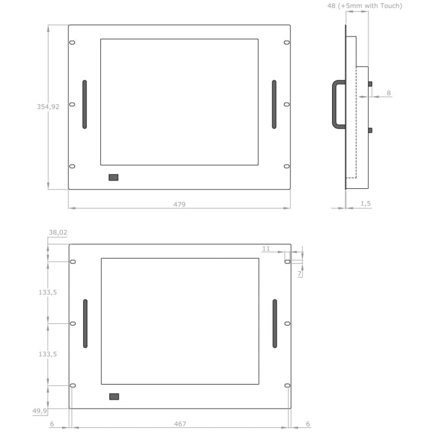 - Dimensioni: 479 (L) x 354.9 (A) x 49.5 (P) mm