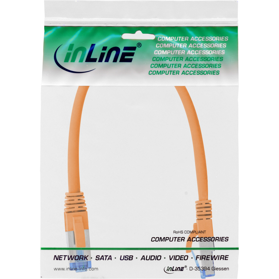 InLine Cavo patch Lan, S/FTP(PiMf), Cat.6a, 500MHz, CU, halogen., arancio, 0,3m