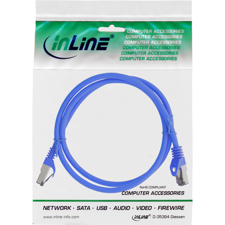 InLine, cavo patch, S/FTP (PiMf), Cat.8.1, 2000MHz, Halogenfree, blu, 0,5m
