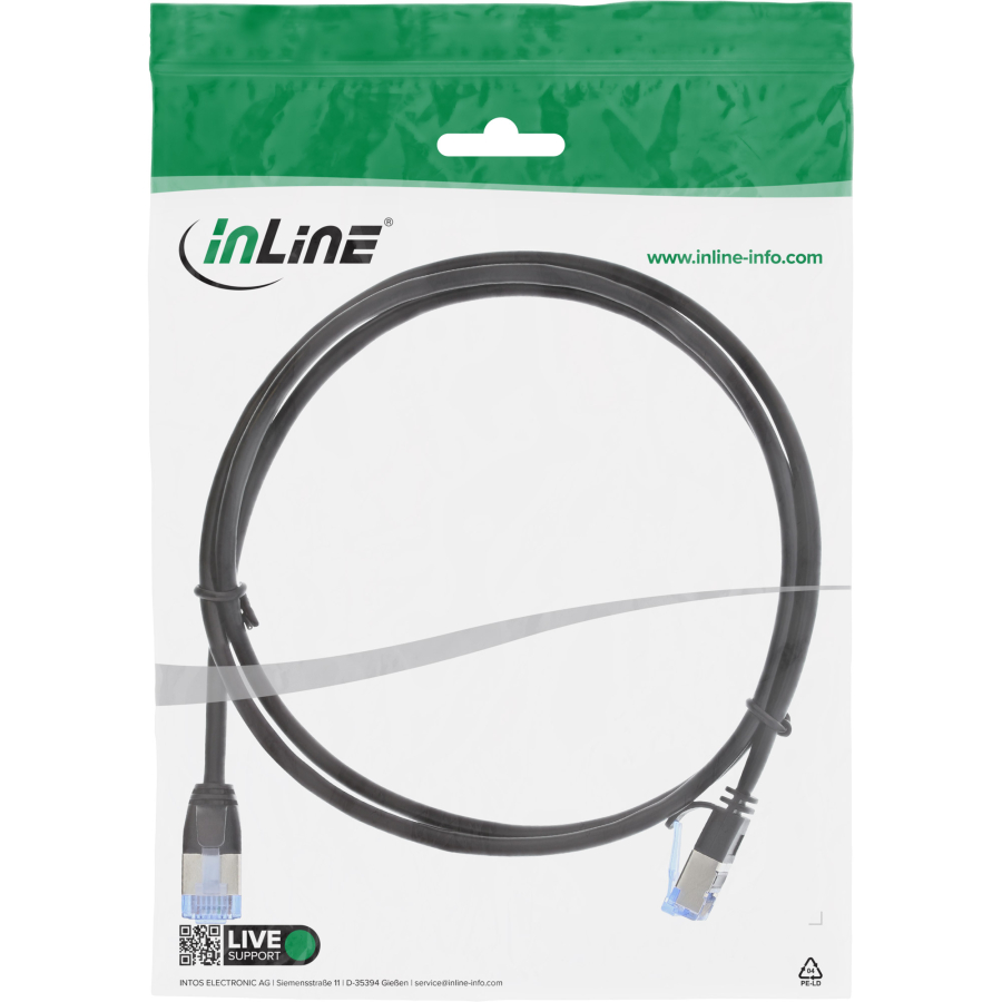 InLine Cavo Rete Lan, U/FTP Slim, Cat.6A, nero, 2m