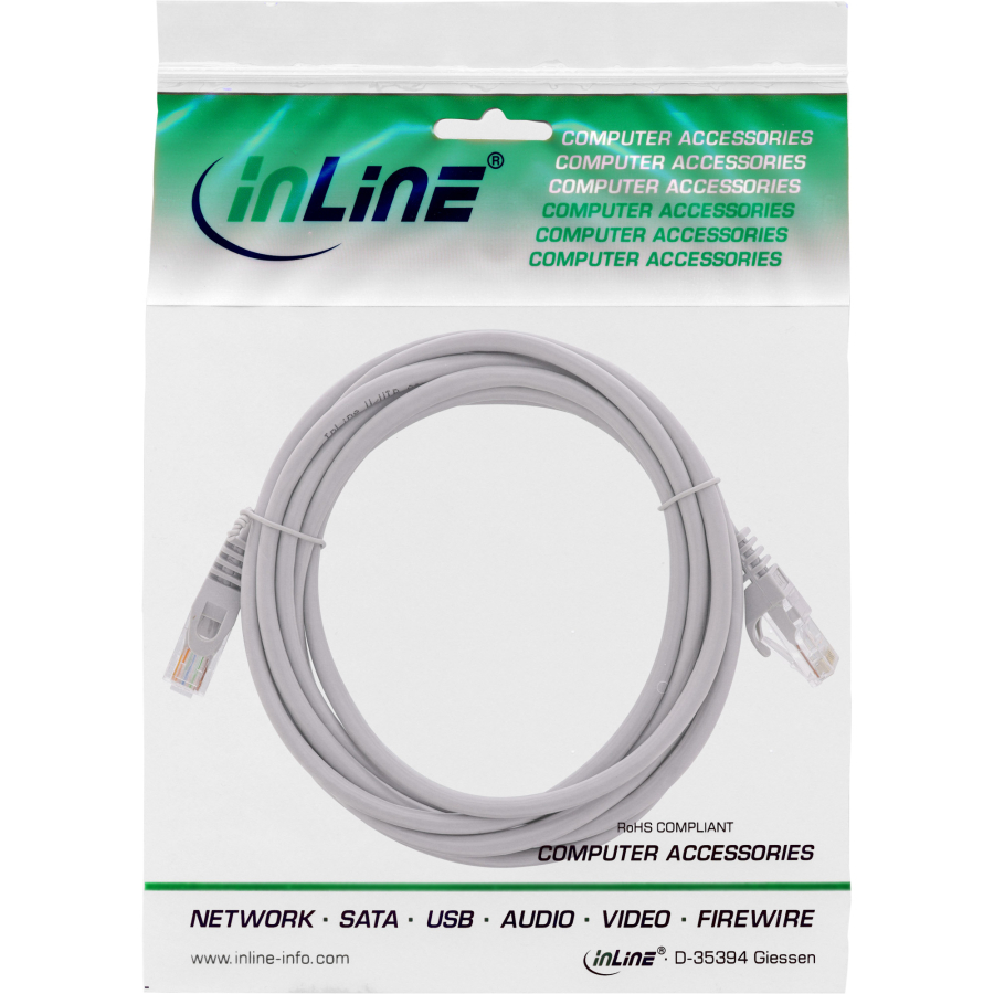 Cavo Patch InLine per reti dati Lan in Cat.5e senza schermatura U/UTP. Ideale per connessioni Ethernet a Fast Ethernet a norma di Switche, Router, Hub, Schede, Printserver e di tutte le periferiche attive e passive di rete.