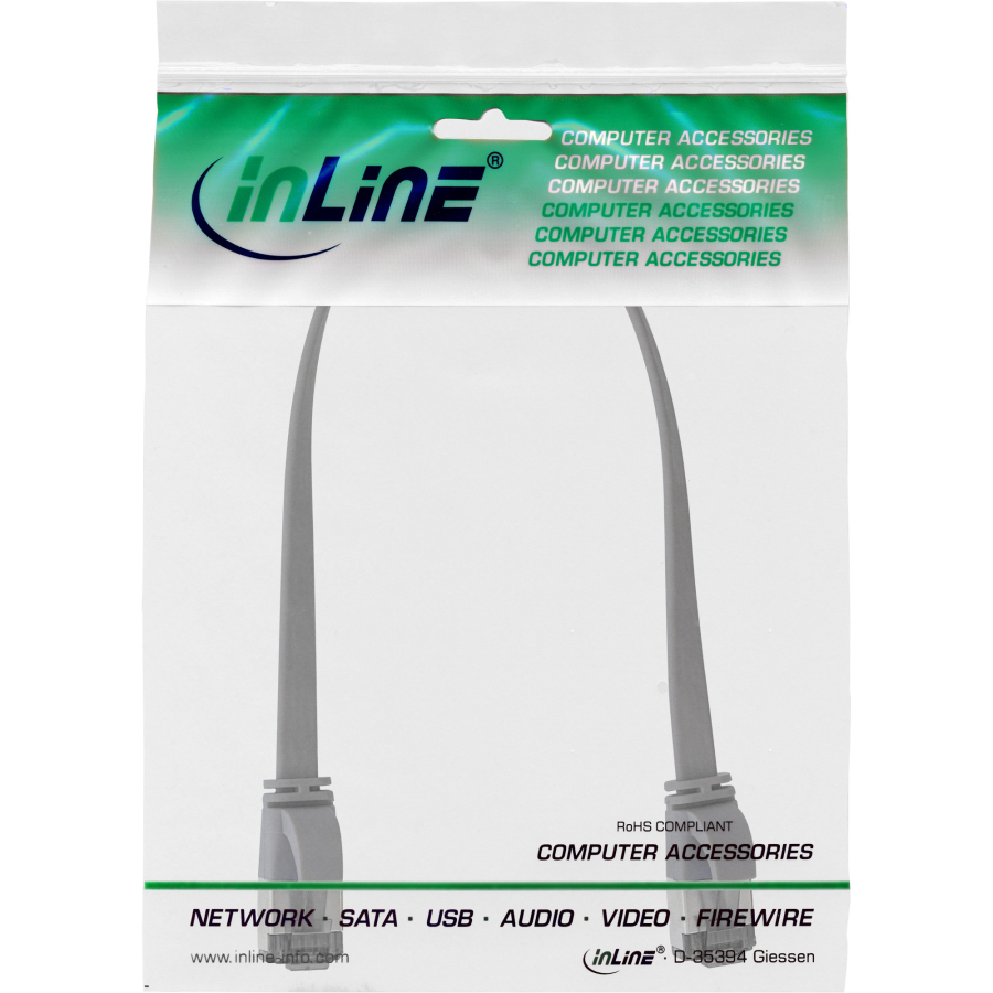 InLine Patch Cable flat, U/FTP, Cat.8.1, TPE senza alogeni, grigio, 0,25m