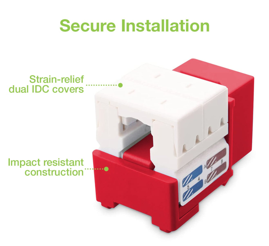 - Calibro del filo: schema di cablaggio da 22 a 24 AWG; TIA/EIA 568A e 568B