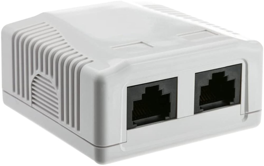 - Presa esterna a muro con due porte per connessioni di rete; Include due frutti RJ45 Cat.6 UTP