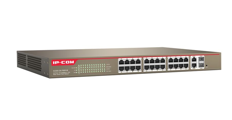 ICIP-S3300-26 è uno switch POE 24 porte 10/100 Mbps con + 2 porte combo RJ45 / SFP con supporto Web-Smart. Tutte le porte supportano POE (potenza massima totale: 370 W) Ideale per collegare e alimentare telecamere IP. telefoni IP e access point POE compatibili tramite cavo RJ45. Gestione via Web e possibilità di aggiornamento del firmware.Caratteristiche