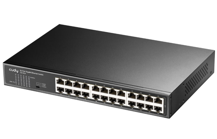 - 24 porte Auto-MDI/MDIX con negoziazione automatica 10/100/1000 Mbps forniscono commutazione intelligente tra hardware da 10 Mbps. 100 Mbps e 1000 Mbps