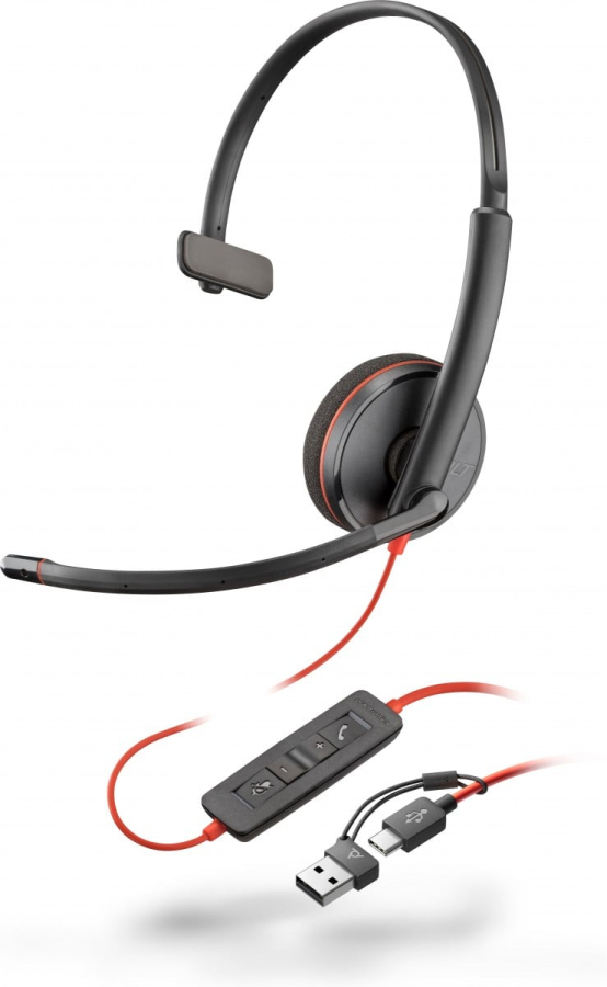 HP Poly Blackwire 3210 Monaural USB-C Black Headset +USB-C/A Adapter (Bulk) Nero