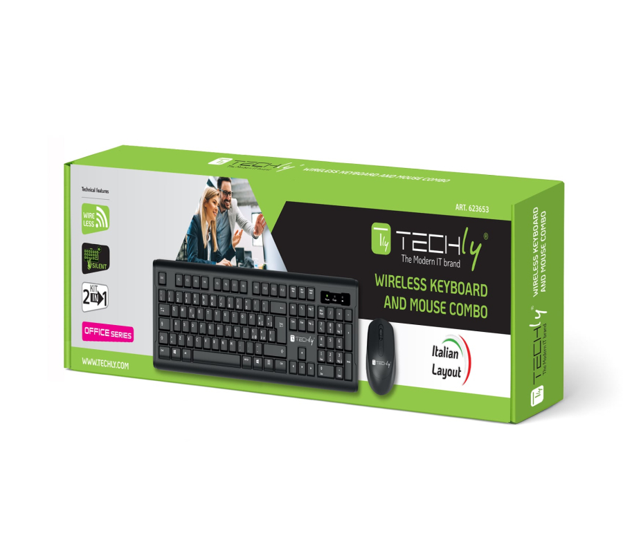 - Kit composto da tastiera e mouse wireless 2.4GHz