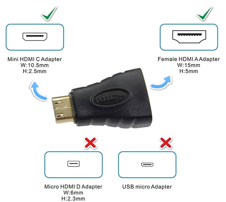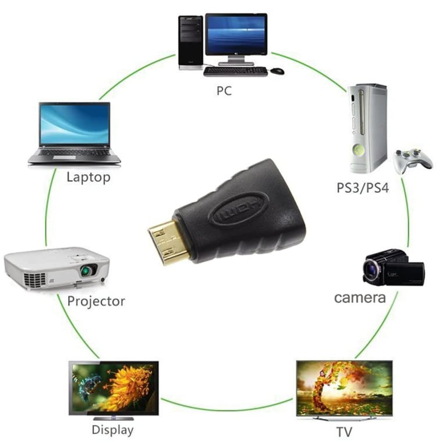 - Permette di collegare apparecchi con connessione mini HDMI come macchine fotografiche. videocamere. ecc. ad un cavo HDMI standard