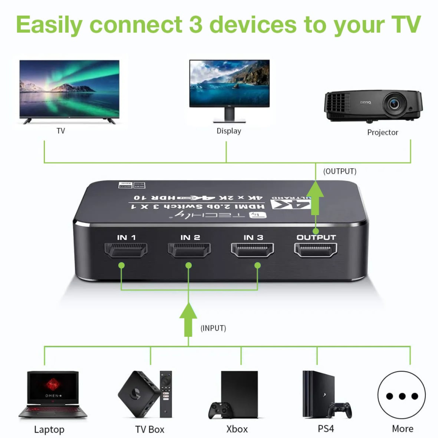 - Switch HDMI2.0b 3in 1out 4K@60Hz