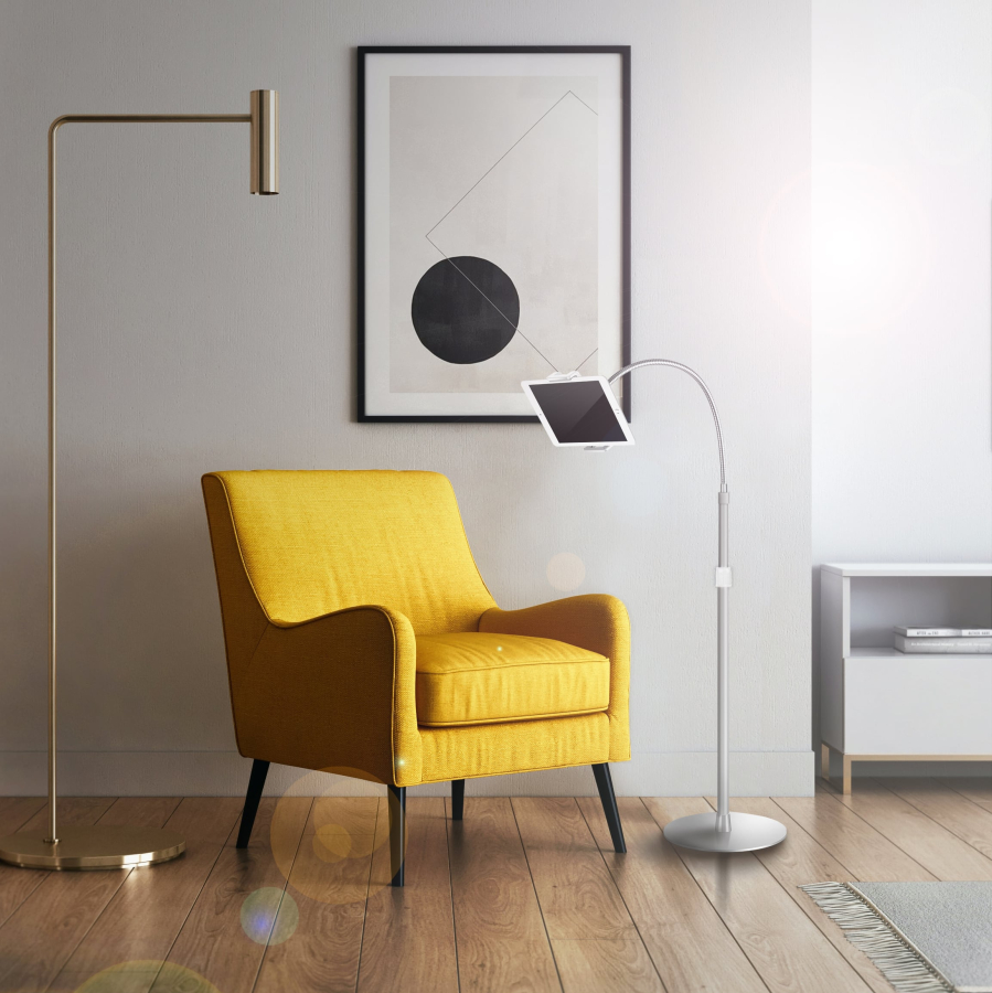 - Stand per tablet e smartphone da pavimento. dotato di comodo collo di cigno flessibile
