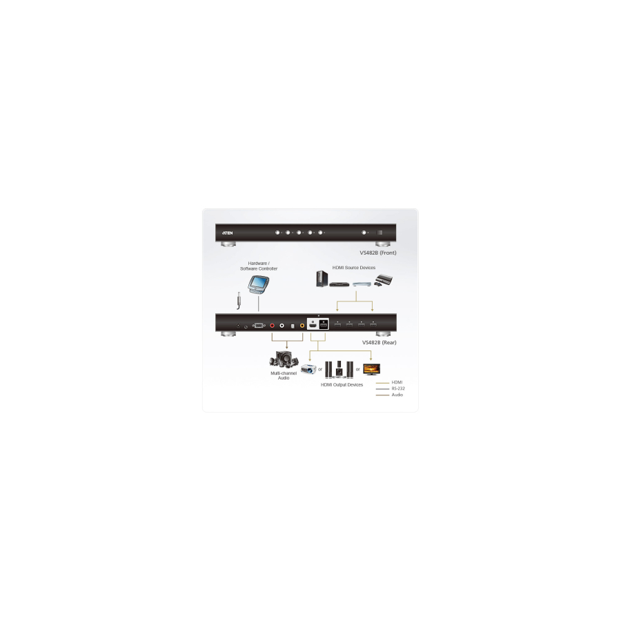 Lo switch VS482B di ATEN è la soluzione ideale per le applicazioni che richiedono una risoluzione video superiore True 4K durante il collegamento di 4 sorgenti A/V HDMI a 2 schermi HDMI. Conforme con gli standard HDMI 2.0, la funzione Canale ritorno audio (ARC) dello switch consente agli utenti di inviare l'audio senza dover collegare cavi audio aggiuntivi.