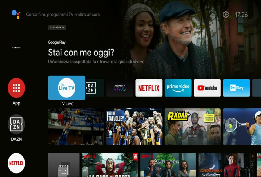 - Include telecomando Bluetooth intelligente. con tasti dedicati alle applicazioni certificate NETFLIX. PRIME VIDEO. YOUTUBE. LIVE TV e Assistente Vocale Google integrato. Sintonizzatore DVBT2 HEVC Main10 USB. Funzione Chromecast integrata
