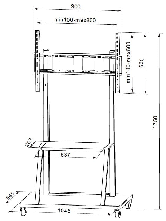 - Staffa di supporto per la televisione regolabile in 2 posizioni; altezza totale del trolley 1750 mm
