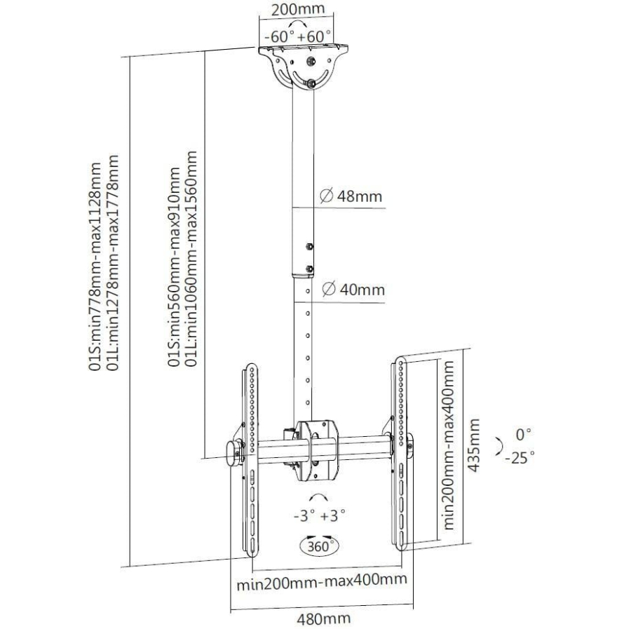 - ICA-CPLB 944S è una staffa da soffitto full-motion progettata per offrire il massimo in termini di versatilità e di compatibilità universale