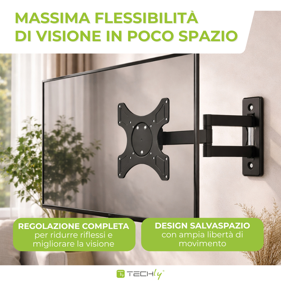 Supporto a Muro per TV LED LCD 19-37'' Inclinabile 3 Snodi Bicolor Bianco Nero