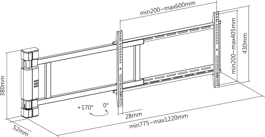 - Supporto TV dal design sottile: distanza minima dalla parete di soli 56 mm; Dimensioni: 430 x 52 x 775 - 1220 mm; Colore: nero